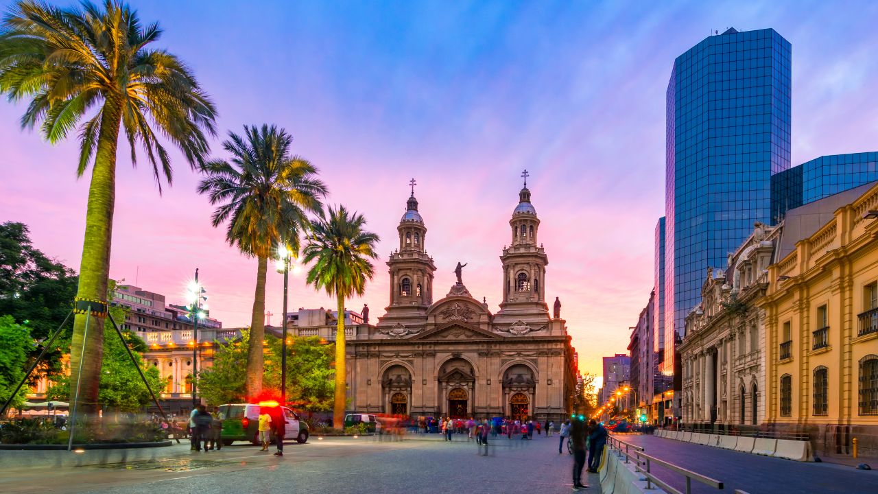O dia começa com um city tour de meio período, explorando os principais pontos turísticos de Santiago. A primeira parada é na Plaza de Armas, o coração histórico da cidade, cercada por edifícios coloniais e monumentos que contam a trajetória do Chile. Em seguida, a rota segue para a Providencia, uma região que combina áreas residenciais sofisticadas com centros comerciais modernos. O passeio continua pelo Parque Bicentenário, um dos mais belos espaços verdes da cidade, ideal para um breve momento de contemplação e belas fotos. O tour se encerra no Mercado Central de Santiago, famoso por sua gastronomia, sendo uma excelente oportunidade para degustar frutos do mar frescos, como a centolla chilena.