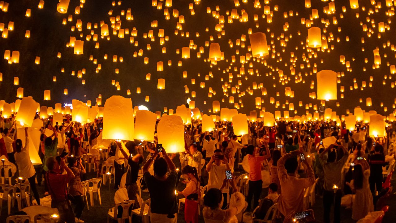Em horário combinado, traslado para o CAD Khom-Loy Sky Lantern Festival, um dos eventos mais marcantes da Tailândia. Durante o festival, vivenciaremos atividades culturais, teremos um jantar no estilo Thai Lanna e participaremos da emocionante cerimônia de lançamento das lanternas no céu. Retorno ao hotel após o evento.