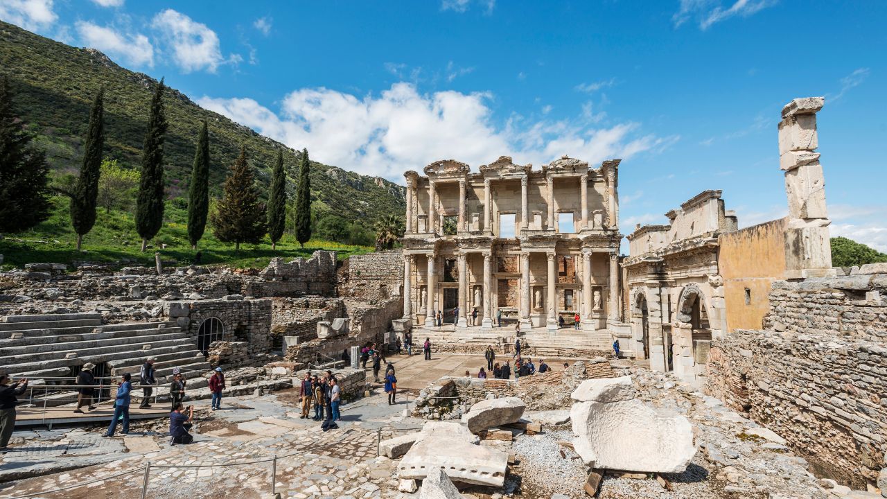 Após o café da manhã, saída para visita a Éfeso, considerada a cidade greco-romana mais bem preservada da Turquia. Caminhamos por ruas históricas e conhecemos alguns de seus principais destaques, como a Biblioteca de Celso, a Rua do Mármore e o Grande Teatro, onde São Paulo realizou pregações.